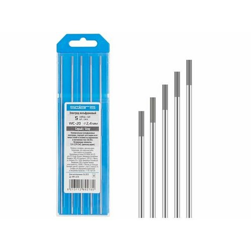 Электрод вольфрамовый серый WC-20, Ф 2,4 мм (набор 5 шт) SOLARIS (WM-4518)