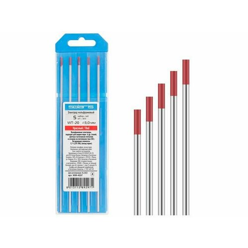 Электрод вольфрамовый красный WT-20, Ф 3,0 мм (набор 5 шт) SOLARIS (WM-4537)