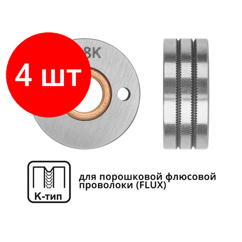 Комплект 4 штук, Ролик подающий ф 30/10 мм, шир. 12 мм, проволока ф 0.8-1.0 мм (K-тип) (для флюсовой (FLUX) проволоки) (WA-2435) (SOLARIS)