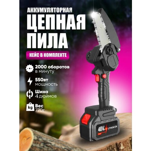Пила аккумуляторная цепная садовая мини электроинструмент