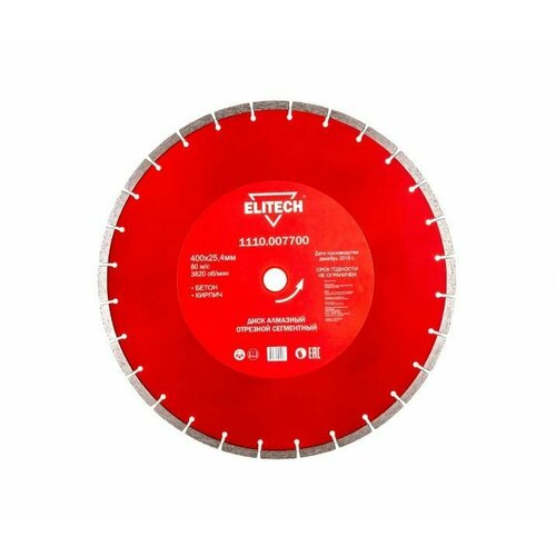 Диск алмазный ELITECH 1110.007700 сегментный, 400 х 25.4мм, бетон, кирпич