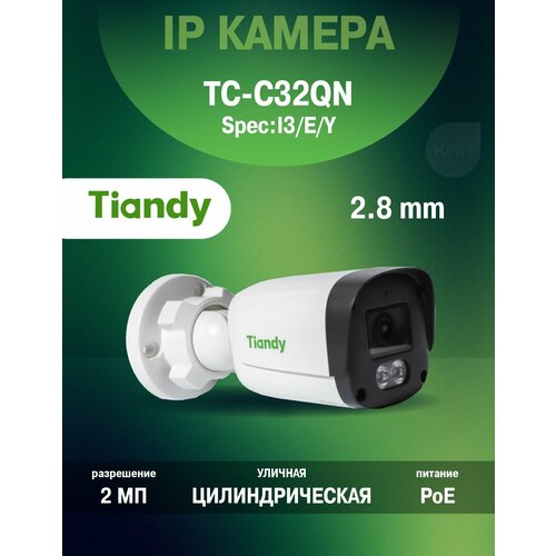 Уличная цилиндрическая IP-камер Tiandy TC-C32QN с объективом 2 МП с углом обзора 102,8 (2.8mm) и Smart ИК-подсветкой до 30 метров.