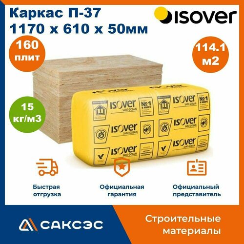 Утеплитель ISOVER Каркас П37 каменная вата 1170х610х50мм, 160 плит, 114.16м2 / Минеральная вата утеплитель Изовер