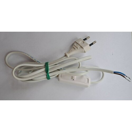 Шнур с выключателем и плоской вилкой провод ШВВП 2х0,5мм2 1.7 метра