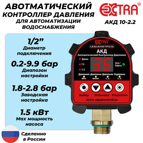 Реле давления воды для насоса Extra Акваконтроль РДЭ-10-2,2 / Автоматика для насоса / Подключение G 1/2"