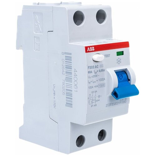 Устройство защитного отключения (УЗО) F202 63А 2П двухполюсный 30мА 10кА 2 модуля 2CSF202001R1630 ABB