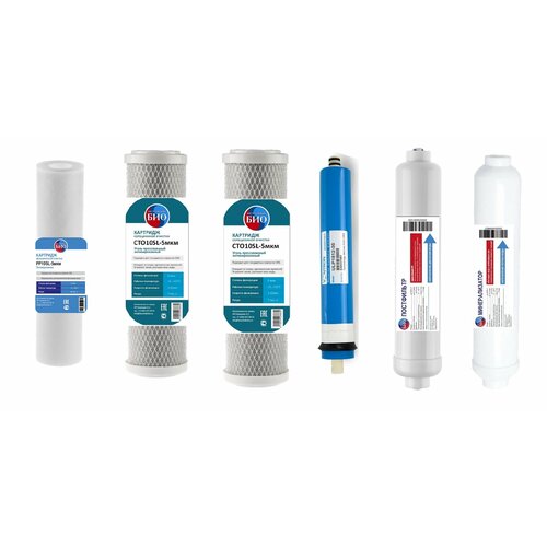 Универсальный набор картриджей для систем обратного осмоса с минерализатором ( 6 предметов ) / для загрязненной воды
