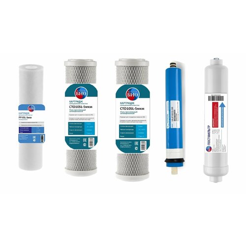 Универсальный набор картриджей для систем обратного осмоса, с мембраной / 5 предметов /подходит для систем стандарта 10sl/ для загрязненной воды