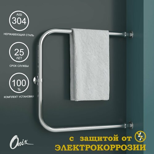 Полотенцесушитель Водяной Onix, модель Best Turn Chrome Right 500x600, П-образный, Хром, полный комплект, с защитой от электрокоррозии