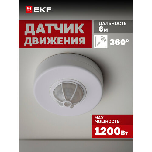 Инфракрасный (ИК / IR) датчик движения потолочный EKF PROxima MS-28A сенсор включения освещения, 1200Вт, угол обзора 360 , дальность до 6м, класс защиты IP20