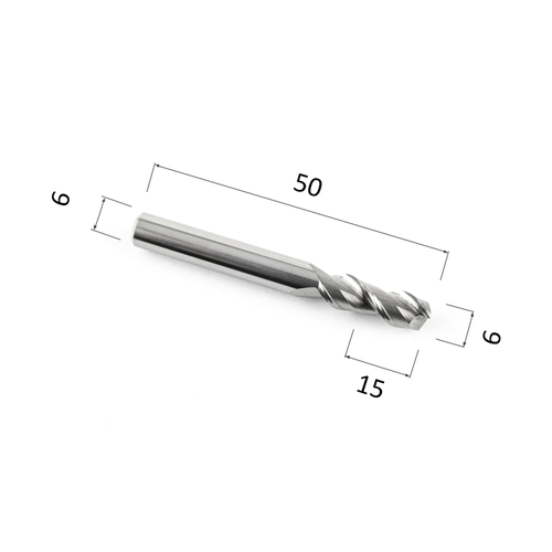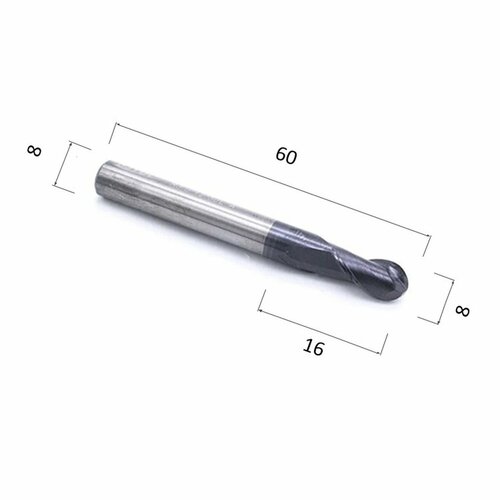 Фреза DJTOL AS2QX08 двухзаходная сферическая с покрытием AlTiN по стали цветным мателлам: алюминию, латуни, меди, бронзе