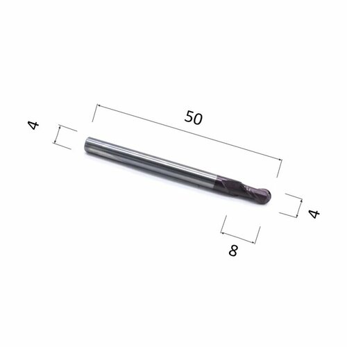 Фреза DJTOL AS2QX04 двухзаходная сферическая с покрытием AlTiN по стали, цветным металлам алюминий, латунь, медь, бронза