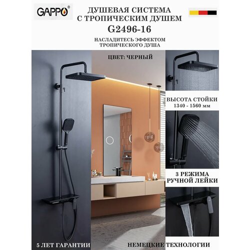 Душевая система с тропическим душем Gappo G2418-1, со смесителем