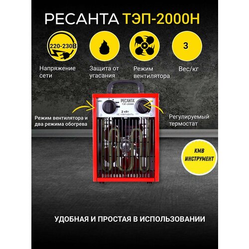 Тепловая пушка "Ресанта" ТЭПК-2000, электрическая, 25/1000/2000 Вт, 120 м3/час