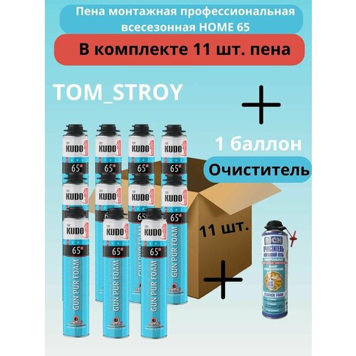 Монтажная пена профессиональная всесезонная KUDO HOME 65, 1000мл, в комплекте 11шт+ Очиститель монтажной пены