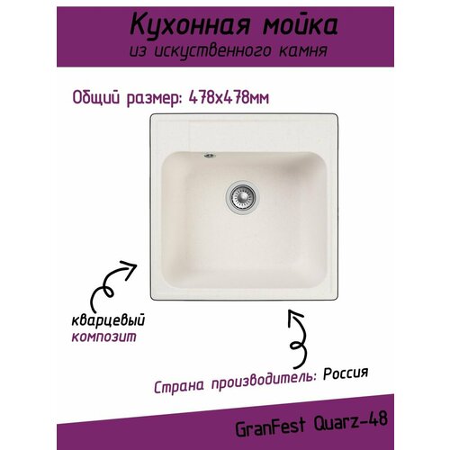 Кухонная кварцевая мойка GranFest QUARZ GF-Z48 480*480мм