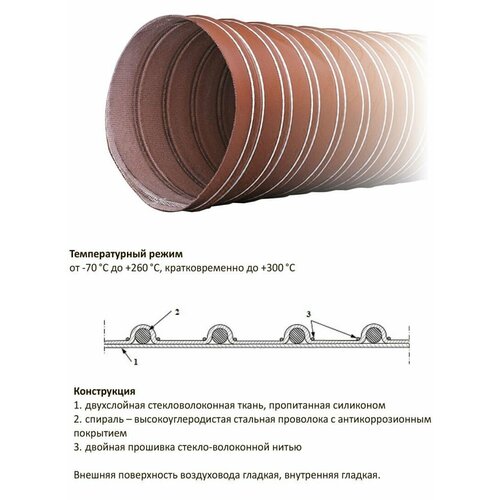 Высокотемпературный воздуховод SIL-300-ф70, 4 метра из стекловолоконной ткани, пропитанной силиконом