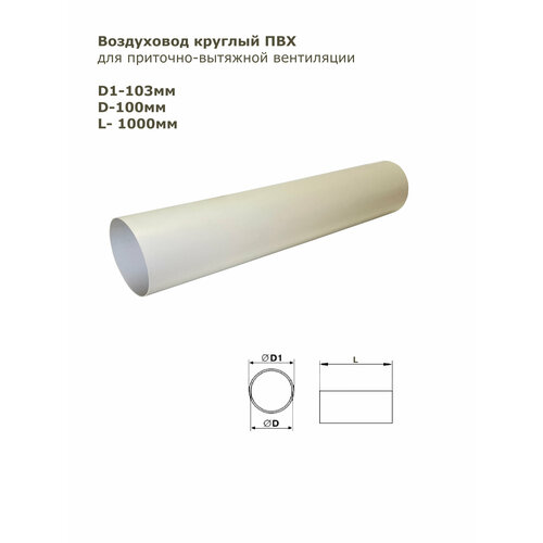 Вентиляционный круглый канал 100мм х 1м, 1 шт, 1010, воздуховод, ПВХ