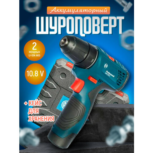Дрель-шуруповерт от аккумулятора, 10.8 В, 30 Нм, 2 АКБ, кейс для хранения