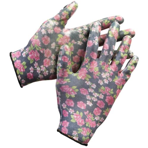 Перчатки GRINDA садовые, прозрачное PU покрытие, 13 класс вязки, бело-розовые, размер M