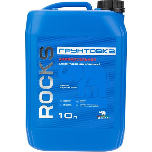 Грунтовка универсальная ROCKS для влажных помещений 5л - быстросохнущая, паропроницаемая на основе полимерной дисперсии.