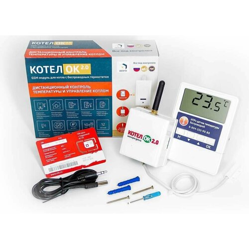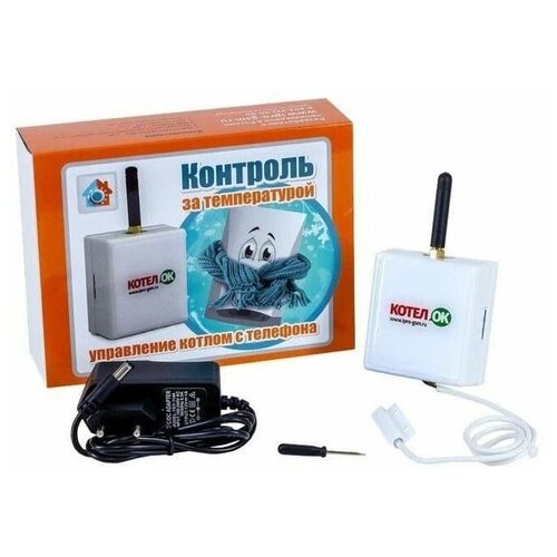 Представляем прибор для контроля за температурой в доме. Прибор подходит также для управления нагревательными приборами с мобильного телефона.преимущества котел. ОК 2.0 • Настройка прибора одним звонком за 2 минуты.• С помощью проводного датчика температуры можно контролировать температуру в доме со своего телефона находясь даже за 1000 километров.• Выставите верхний и нижний пороги температуры и при поломке котла и остывании дома прибор сообщит вам на мобильный телефон о снижении температуры.• С телефона управляйте температурой в доме. Можно управлять газовыми или электрическими котлами. Подключается как внешний термостат (стандартная функция).• В ваше отсутствие задавайте экономную температуру (например +10 С°, перед приездом задайте с телефона температуру +23 С°к вашему приезду дом прогреется. Возможно экономить на отоплении до 1500 рублей в месяц, особенно если вы постоянно не живете в доме.• С помощью термодатчика в металлическом корпусе можно контролировать температуру теплоносителя и получать с