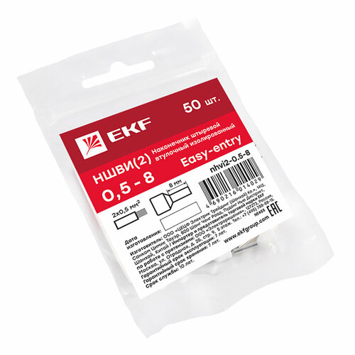 Наконечник штыревой втулочный изолированный EKF НШвИ(2) 0,5-8 мм двойной 50 шт