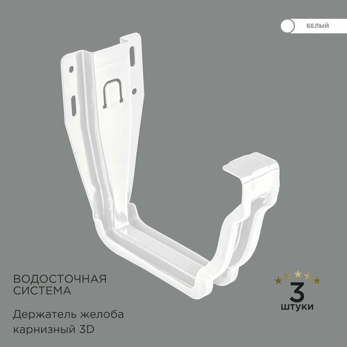 Держатель / крюк желоба карнизный 3D прямоугольной водосточной системы 120x86. Комплект 3 штуки. Белый RAL 9003