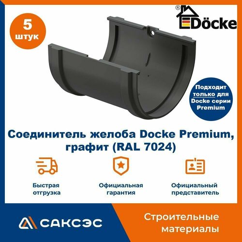 Соединитель желоба Docke Premium, графит (RAL 7024) / Соединитель водостока Деке Премиум (5 шт в комплекте)