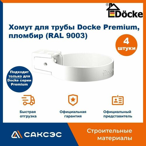Хомут для водосточной трубы Docke Premium, пломбир (RAL 9003) / Крепление водосточной трубы ПВХ Деке Премиум (4 шт в комплекте)
