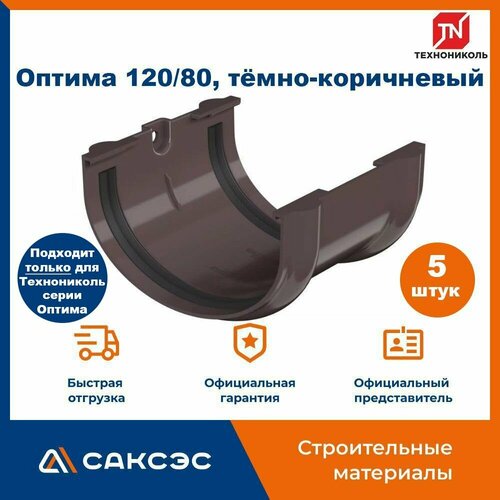 Соединитель желоба Технониколь Оптима 120/80, темно-коричневый / Соединитель водостока Технониколь (5 шт в комплекте)