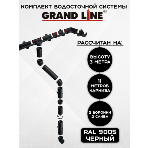 Комплект водосточной системы Grand Line 11 метров (2 слива) (120мм/90мм) водосток для крыши пластиковый Гранд Лайн янтарь (RAL 9005)