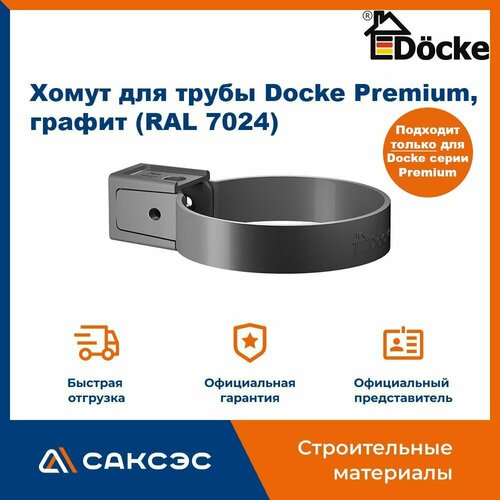 Хомут для водосточной трубы Docke Premium, графит (RAL 7024) / Крепление водосточной трубы ПВХ Деке Премиум