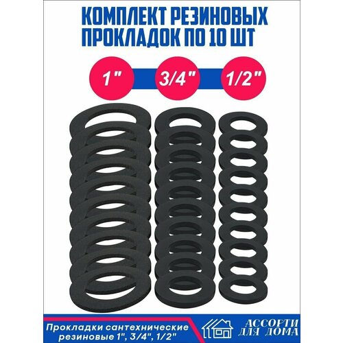 Сантехнические прокладки, резиновые 1, 1/2 и 3/4 дюйма/ набор прокладок для крана, шланга, воды из резины, всего в комплекте 30 штук