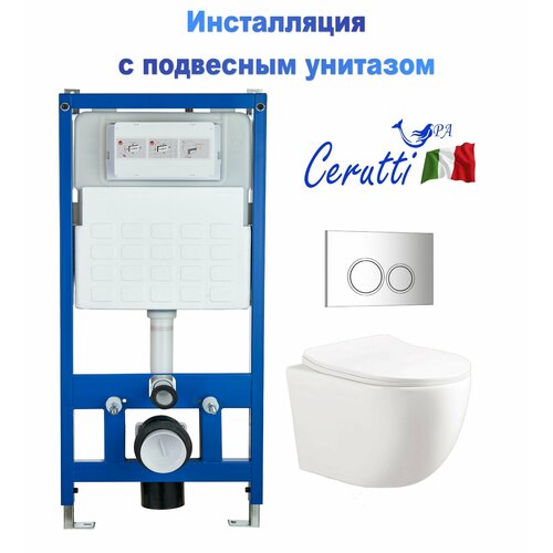 Комплект 4 в 1 инсталляция с подвесным унитазом Cerutti SPA Orlter PP, сиденье микролифт, кнопка смыва хром (CR556+CT9739+CR05CH)