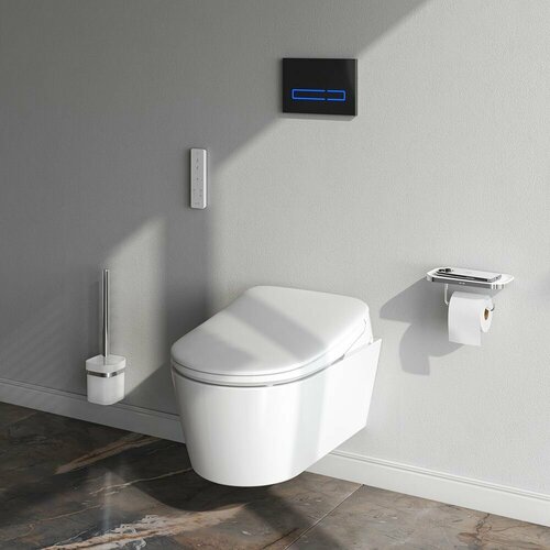 Унитаз подвесной AM.PM Func FlashClean C8F1702SC 54 электронная крышка-биде, пульт д/у, безободковый, антивсплеск, премиальный фарфор, гарантия 25 лет