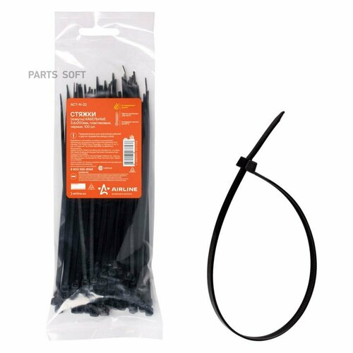 AIRLINE ACT-N-22 Стяжки (хомуты) кабельные 3,6*200 мм, пластиковые, черные, 100 шт. AIRLINE ACT-N-22