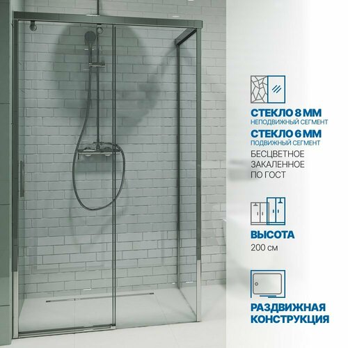 Душевой уголок GWMPSLRC863B 95x150 см, цвет фурнитуры хром блестящий, цвет стекла бесцветный, стекло закаленное 8 мм / 6 мм
