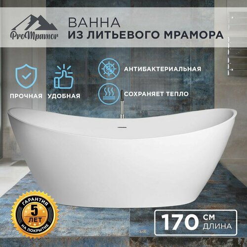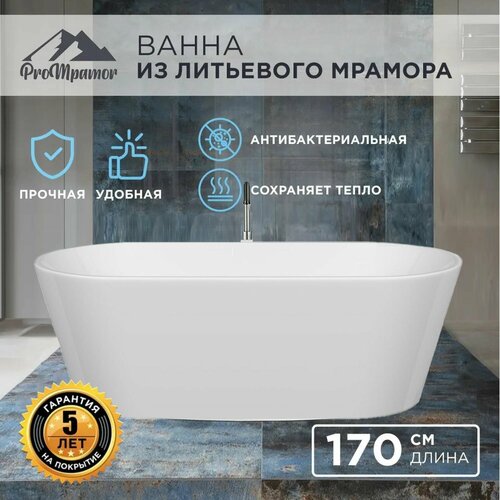 Отдельностоящая ванна из литьевого мрамора ProMramor Монако170 х 80 см без перелива, глянцевая