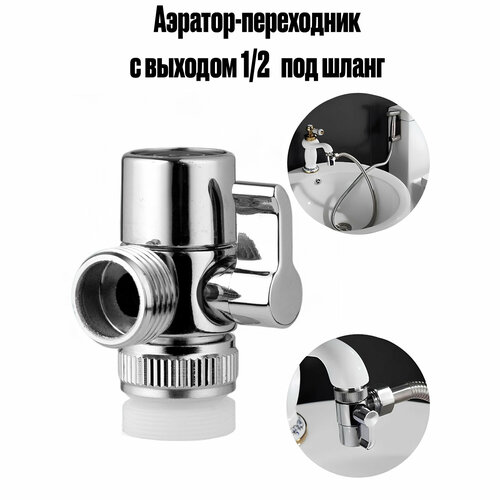 Аэратор для смесителя с переходником-дивертором на кран для подключения шланга или самогонного аппарата, выход 1/2