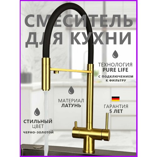 Смеситель для кухни с фильтром для питьевой воды. Смеситель для раковины золотой