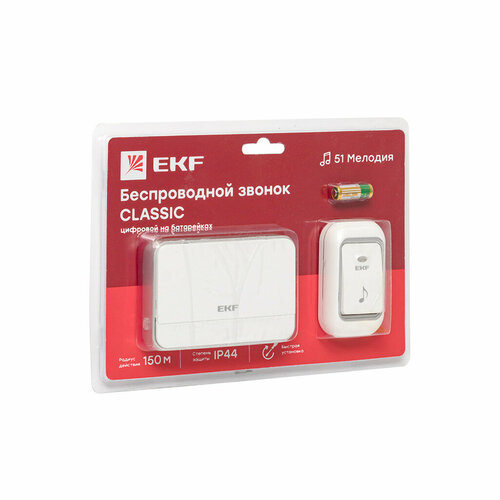 Звонок беспр. на батарейках Classic (2х1,5В АА, бел.-сер. 51 мелод. с индик. 4 ур.) | код DBB-D-003 | EKF ( 1шт )