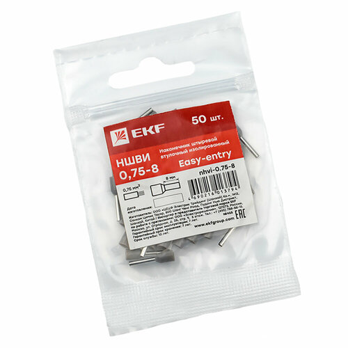 Наконечник штыревой втулочный изолированный EKF 0,75 мм2 НШвИ 50 шт