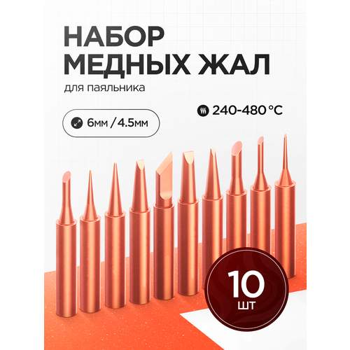 Набор медных жал для паяльника 10 шт, 900М, для паяльников с керамическим нагревательным элементом.