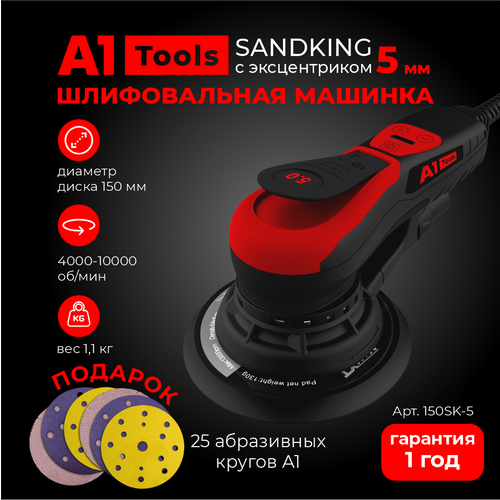 Шлифовальная машинка А1 Tools SANDKING с эксцентриком 5 мм