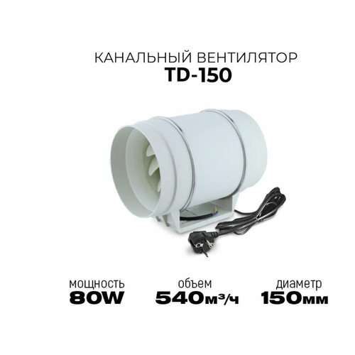Осевой канальный малошумный вентилятор TD-150 SILENT 150мм, 540м3/ч
