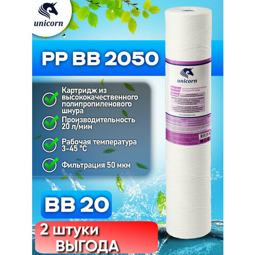 Картридж для фильтра механическая очистка изготовлен из полипропиленового шнура, типоразмер 20"ВВ (Big Blue) Unicorn PPBB2050 2 штуки