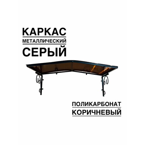 Козырек над входной дверью, над крыльцом YS192, ArtCore металлический каркас с коричневым поликарбонатом
