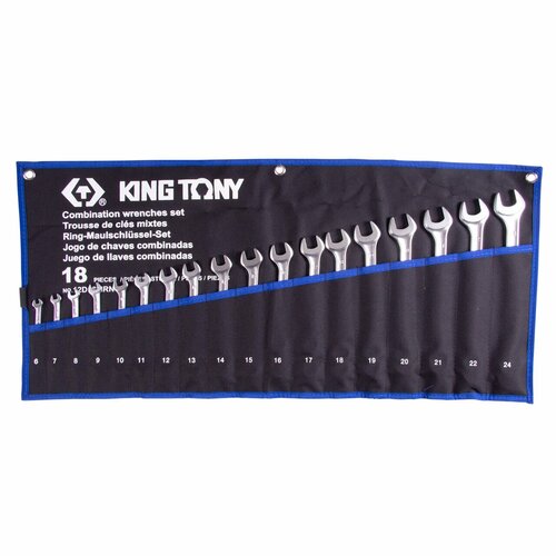 12D18MRN KING TONY Набор комбинированных ключей, 6-24 мм, чехол из теторона, 18 предметов