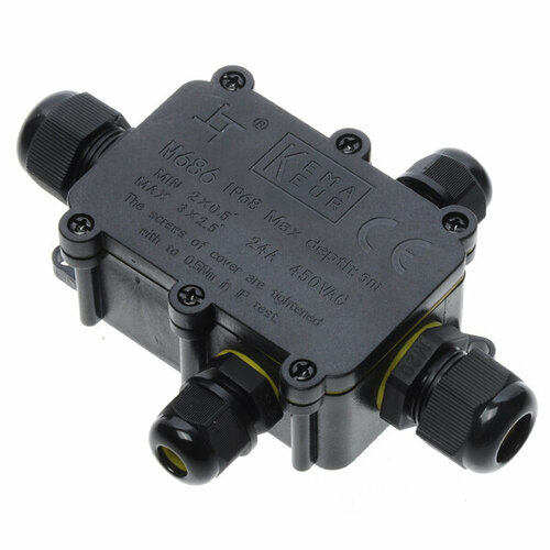 Разветвитель 41462 LD523/LD530 кабельный Т-образный 2P+E 0,5-4мм2 пластик IP68 черный Feron (2 шт. в комплекте)